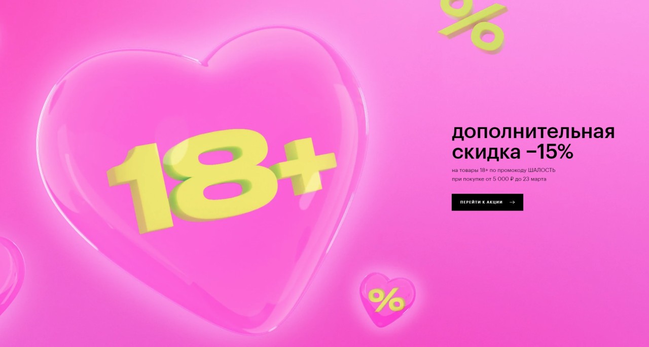 Также в ЗЯ экстра-скидка 15% на раздел Sexual Wellness (при покупке от 5000 рублей) по коду ШАЛОСТЬ. До 24 марта.