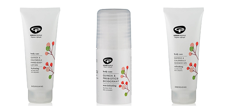 - Green People Quinoa and Calendula Shower Gel (стоимость £14.95) – мягкий гель для душа с киноа и календулой, а также мягкими ПАВами, цветочной водой нероли, соком алоэ, экстрактом лиственницы, экстрактом пустынного растения юкка, эфирными маслами (которые создают аромат средства) имбиря, лимона, лемонграсса, апельсина, гвоздики, в составе.